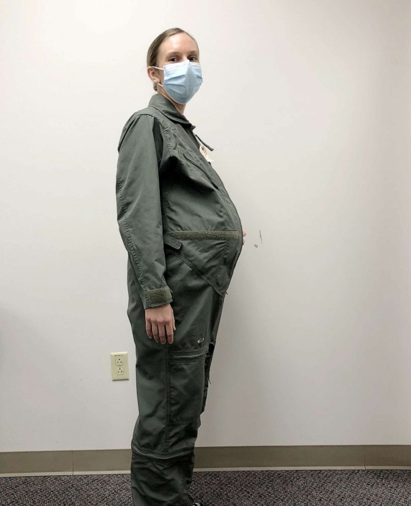 Army veteran Jessica Stuart posted a picture on Twitter showing her in uniform just days before giving birth.